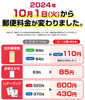 本年10月1日から郵便料金が上がりました。