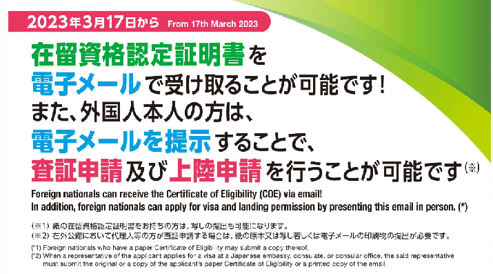 本年3月17日から在留資格認定証明書をメールで受け取ることが可能になりました。