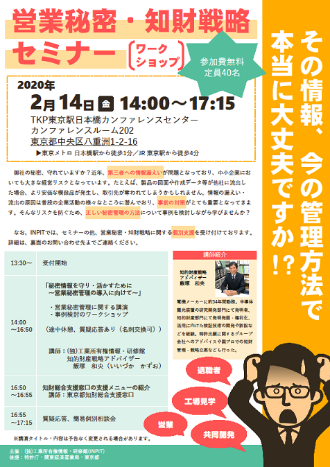 INPIT(工業所有権情報・研修館)では、無料のセミナーをたびたび開催しています。
