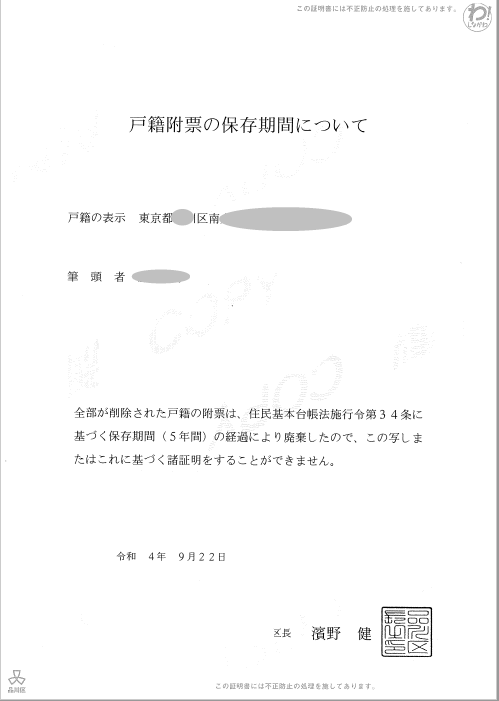 戸籍附票の保存期間