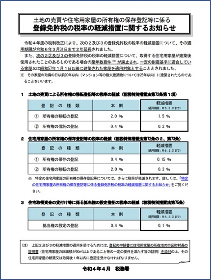 住宅用家屋の登録免許税軽減措置