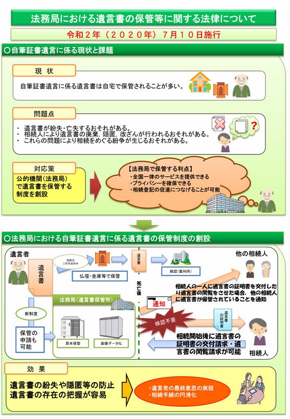 今まで自筆遺言は、遺言者が自宅に置いておくことで紛失のおそれがあったり、相続に争いがあるケースでは発見した相続人が隠匿・勝手に廃棄する等のおそれがありました。